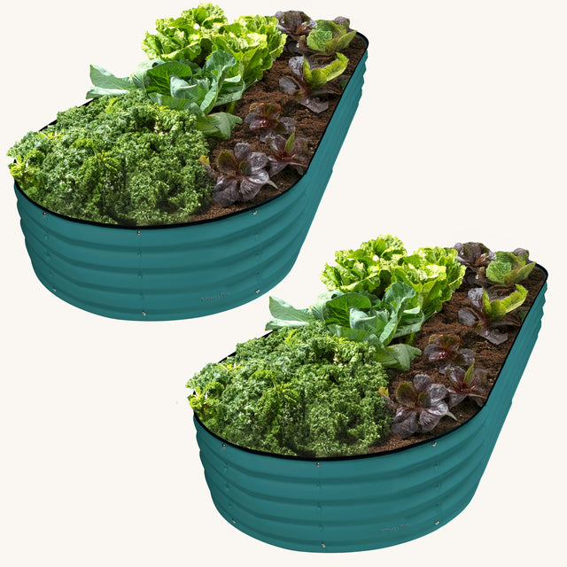 8x4x1 ft Turquoise 2 Pcs Oval Raised Garden Bed