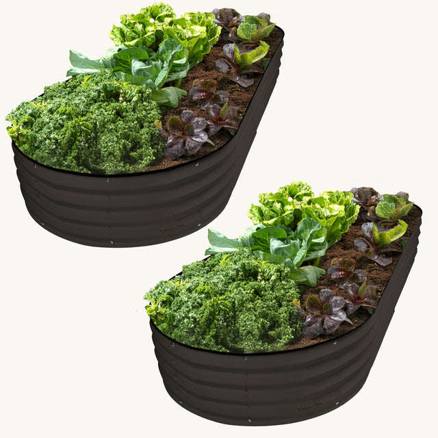 8x4x1 ft Black 2 Pcs Oval Raised Garden Bed