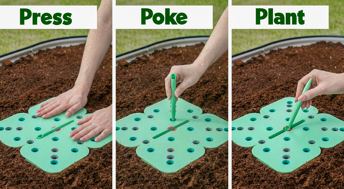 No Measuring Needed, press the grid, poke holes, & plant confidently without guessing or redoing your work - easy and fun